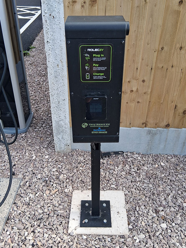 The electric car chargers are now connected and ready for use at the Club. There are three connections, two 7.4kW on the charger named ‘Andy’, and a 22kW connection on the charger named ‘Rosie’. The chargers accept payment by a variety of apps or with credit/debit cards.