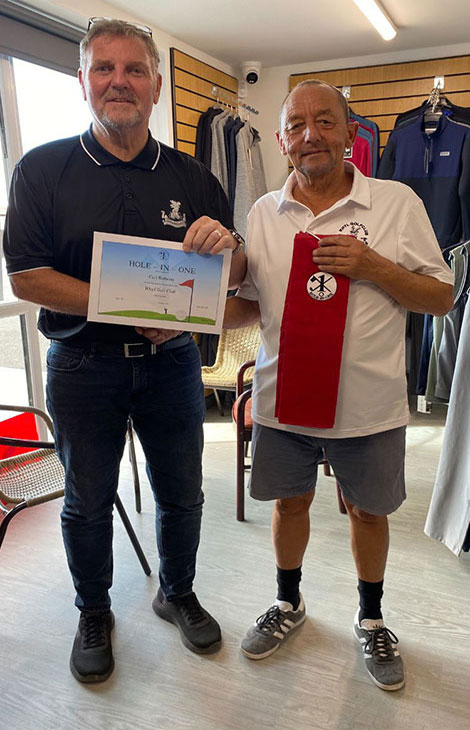 Mr Manager Graham Burke presenting the fifth best left hander in the club Carl Roberts with a Hole in One Towel and Certificate for his hole in one a couple of months ago in the Squibb Cup, well done Carlos ๐๐๐.